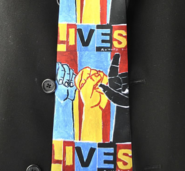 Painting print on front and back of tie