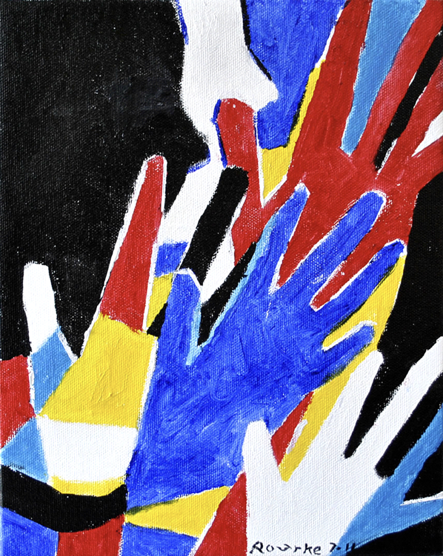 This painting is about the Hand Waving of the Deaf as in hand clapping for the Hearing