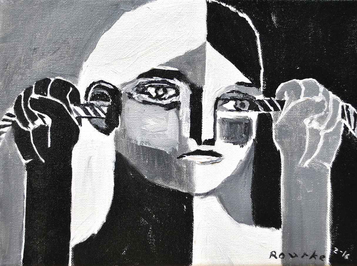 The rope tug a war is between the ear and the eye. Ear is for listening and spoken language. Eye is for visual sign language. The hands pull the rope back and forth as the person is confused, not knowing which identity to choose from