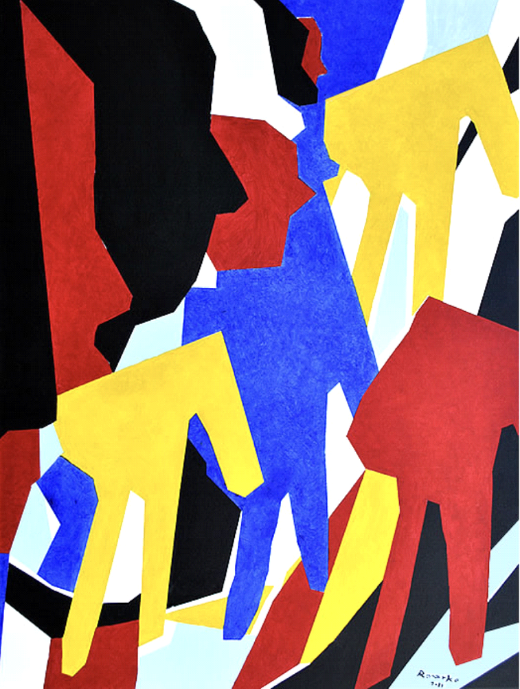 This painting focuses on Deaf Rights, marching for their rights. To stop Audism. The hands show signs ‘Stand up for Justice’.